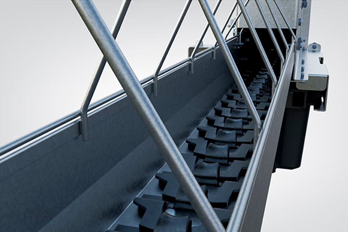 - Perfil exclusivo del canal: desplaza el alimento hacia el centro, facilitando el acceso y mejorando su desplazamiento a lo largo del canal.