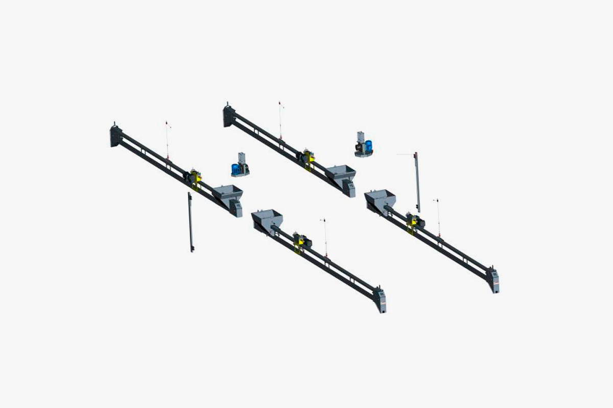 - Dos sistemas anti-posado para impedir que las aves se alojen sobre los canales. El sistema superior puede incorporar electrochoque, mientras que el inferior, con ajuste de altura, se utiliza cuando no hay rejillas.
