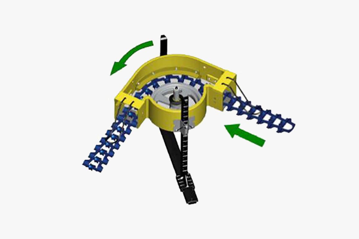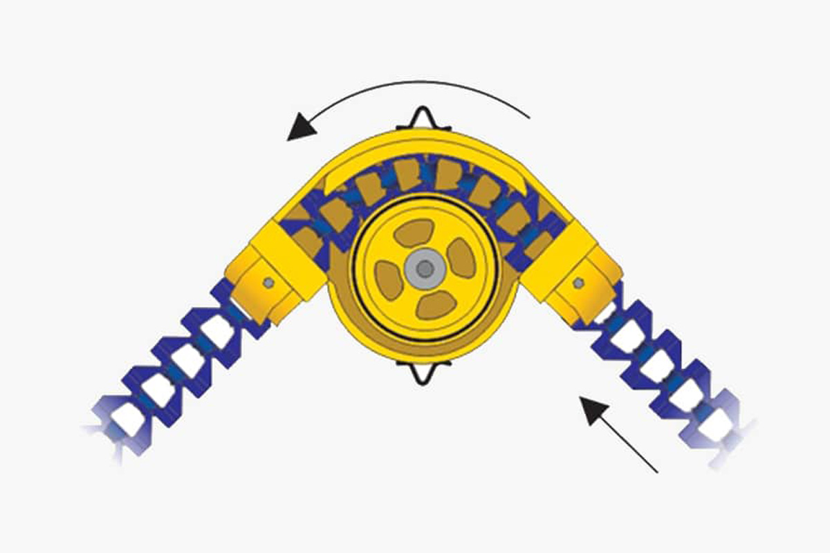 Las curvas de 90° forman parte del sistema alimentador automático de cadena.