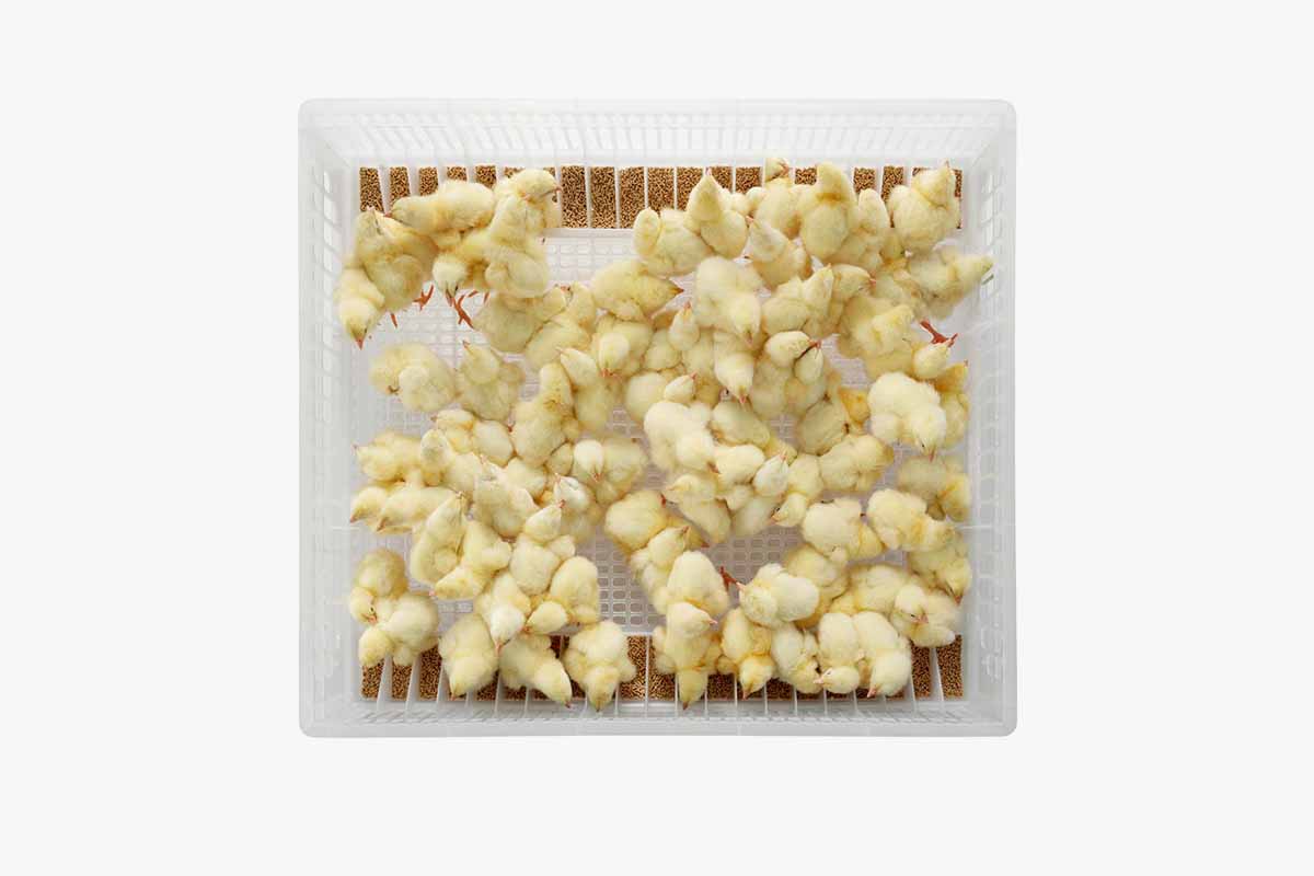 Una vez fuera de la cáscara, los pollitos que han nacido en la HatchCare reciben inmediatamente las necesidades básicas de la vida: alimento, agua fresca y luz. De esta forma se evita la deshidratación y continúan el crecimiento y desarrollo. Los pollitos también están expuestos a una iluminación suave desde el momento de nacer, lo que significa que sufren menos estrés cuando se abre la puerta de la nacedora. Además, los pollitos recién nacidos pueden moverse en la cesta HatchCare, limpia y libre de huevos no eclosionados y de cáscaras, y con un 40% más de espacio que en los sistemas tradicionales. Los pollitos permanecen en la cesta HatchCare, con un generoso espacio habitable y acceso constante al agua y alimento a voluntad, hasta que llegan al galpón de cría. Nunca más tendrán que pasar por máquinas contadoras y clasificadoras, o sufrir el estrés que se asocia a este tipo de manipulación.