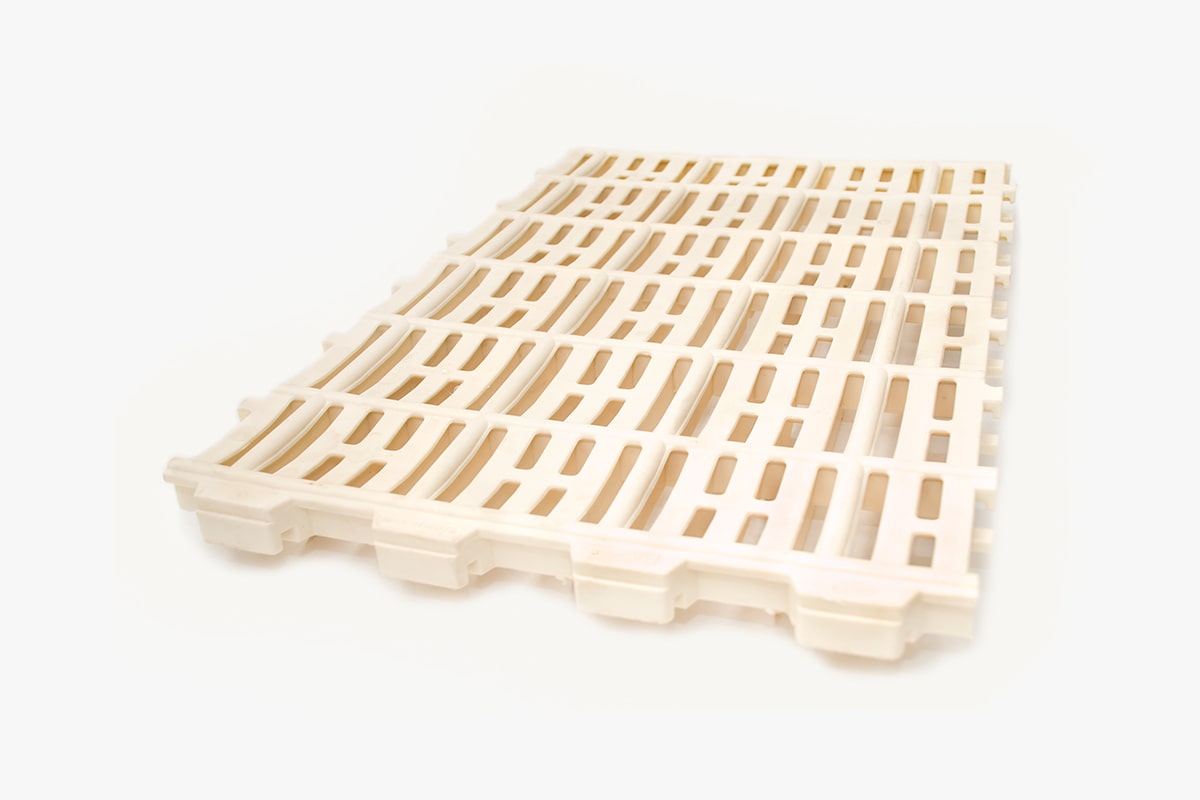 – Pisos plásticos reforzados para maternidad al centro de la plaza con encastre a pisos de destete ranurados especialmente diseñados para facilitar la limpieza y proteger a los lechones de la humedad y calor del piso.