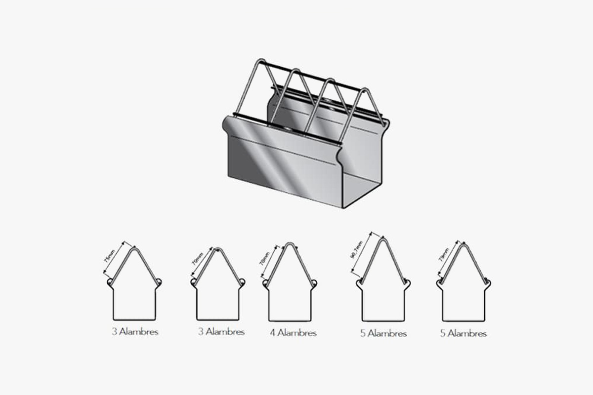 Disponible en 3 modelos de rejilla, 3, 4 y 5 hilos. En el modelo de 4 hilos, tiene doble hilo en la parte superior, lo que aporta mayor resistencia y restringe el acceso de los machos también por la altura de la cresta.