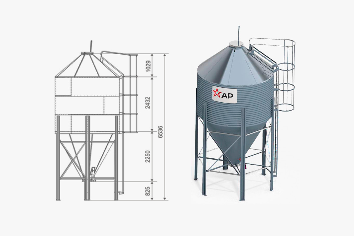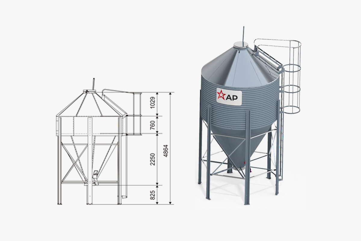 Los modelos SAR 2890 de silos de almacenamiento de ración AP tienen una capacidad de acopio de granos que van desde 9,71 tn a 19,92 tn.