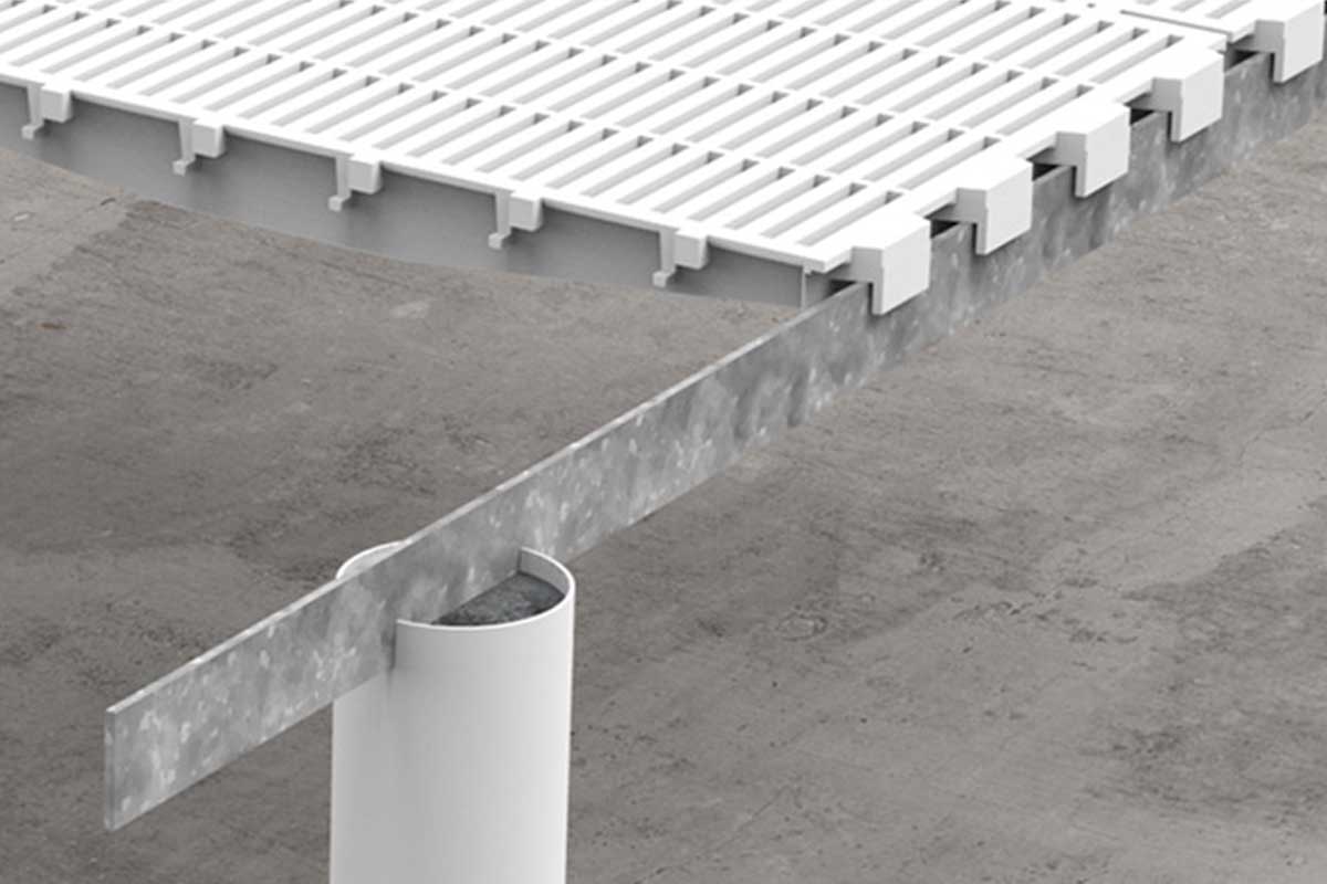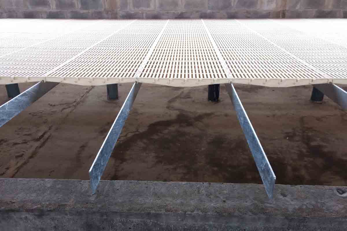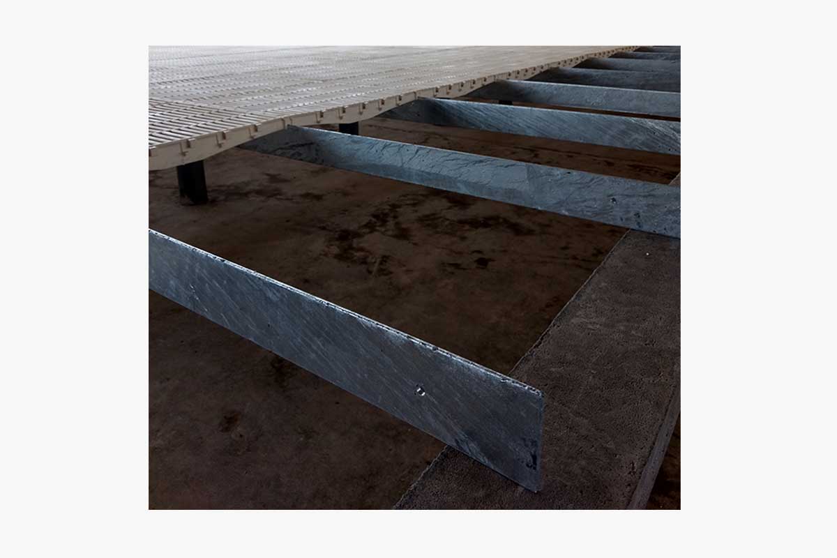 Barras de acero galvanizado de 3/16” de espesor utilizadas para el montaje de pisos plásticos para cerdos.